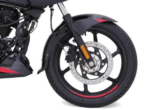 The Pulsar 220F comes equipped with 280 mm front, 230 mm rear disc, Single Channel ABS, broad rear tyre, front and rear tubeless tyres fitted on strengthened 5-spoke alloy wheels to handle the raw power.